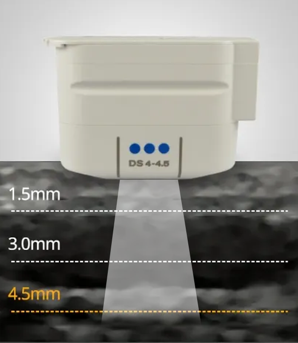 피부 속 1.5~4.5mm 깊이에 정밀하고 강력한 초음파 에너지를 집속하여