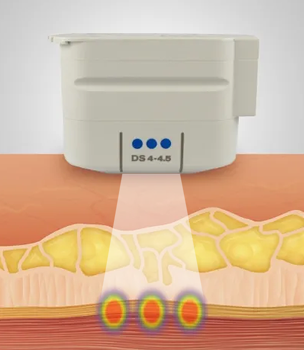 극초단파 에너지가 피부 깊은 층에서 작용하여 콜라겐 생성을 촉진하고 지방세포를 분해합니다.